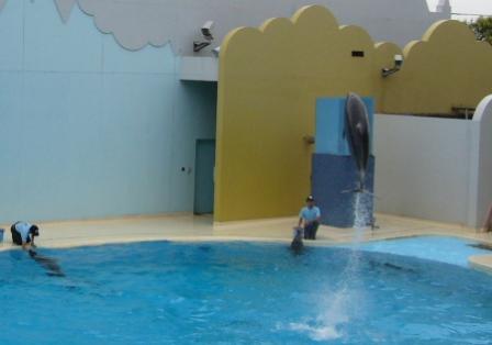 のんびり行き過ぎたのでイルカのショーは終わっていましたがトップの写真のようにライブトレーニングというのをやっていました。