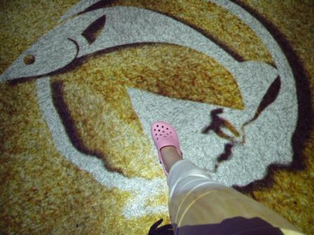 床に砂地の模様を光で作っているのですが上を歩くと水が揺らめく様子が再現されます。