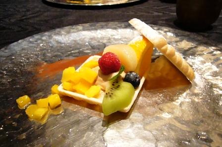 こちらも和風で(和食のお店だからね!)フルーツを最中に乗せてあります。