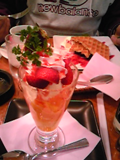 奥でオッサンが食ってるのはベリーベリーワッフルとかいうやつ。