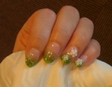 ネイルも着物に合わせてグリーンラメ&白いお花なのですv