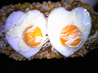 他にも食べている人がいましたが卵を落とさずに食べるの難しいのね。